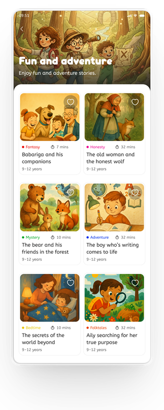 Browse bedtime tales, fairy tales, and fun adventures.